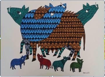 Traditional Gond Art – “Lucky Boars” (2016) by Kishan Uikey Artwork Details: Original Gond painting...