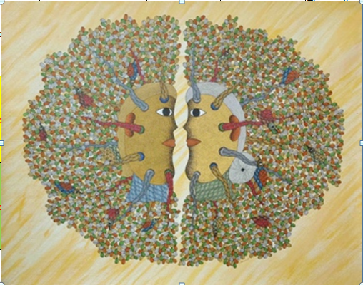 Traditional Gond Art – “Conversation” (2016) by Santosh Maravi