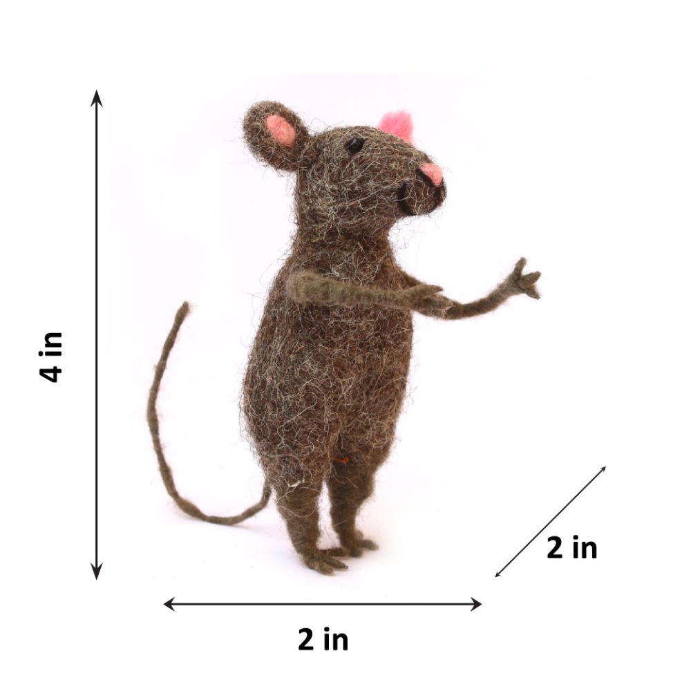 - Made of 100% genuine felt, this mouse ornament cum hanging decor figure measures 2.0" by 2.0" by 4" inches (LWH).