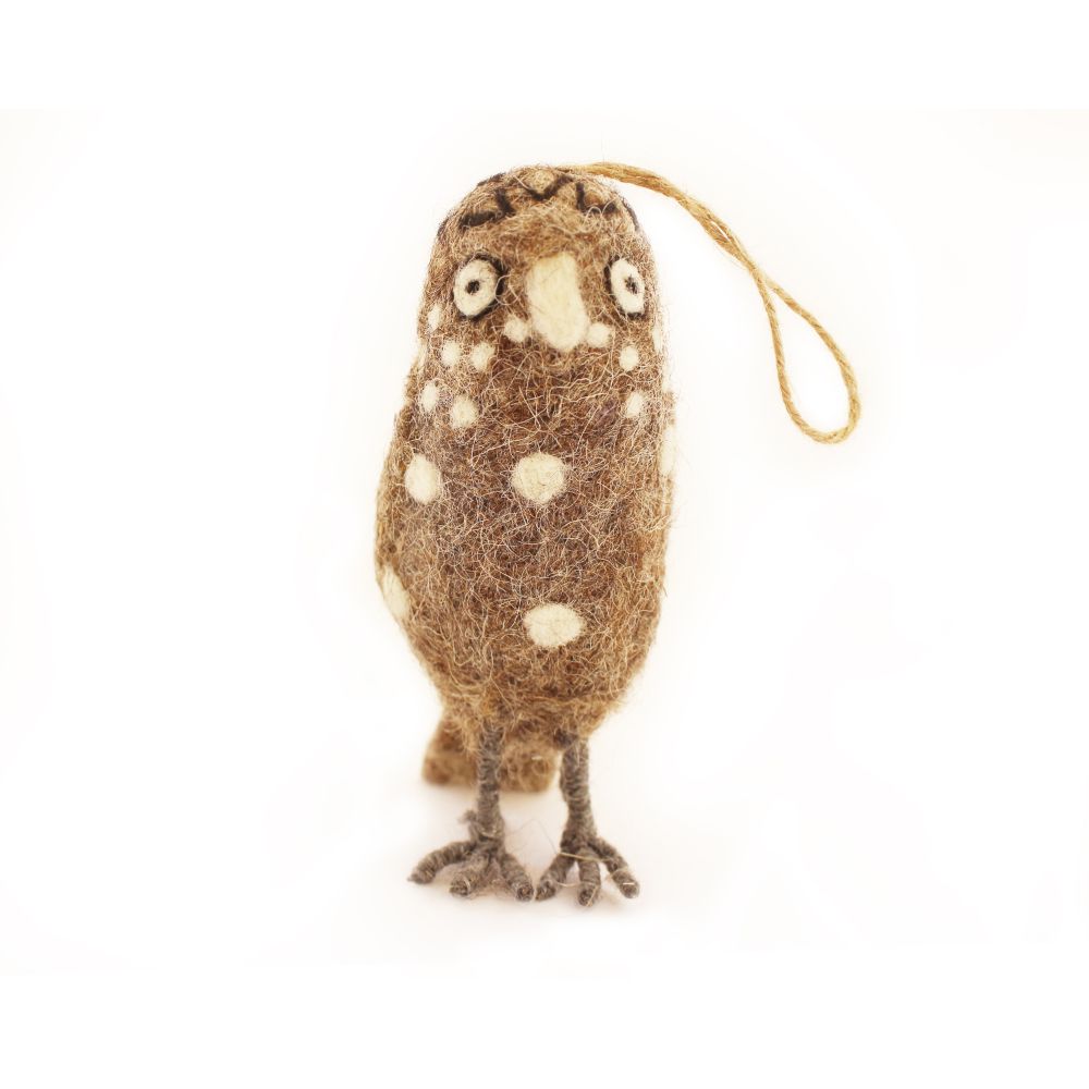 - Made of 100% genuine felt, this Hanging Owl ornament cum home decor figure measures 2.0" by 2.0" by 4" inches (LWH).