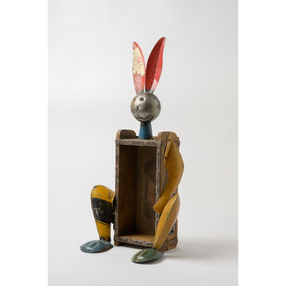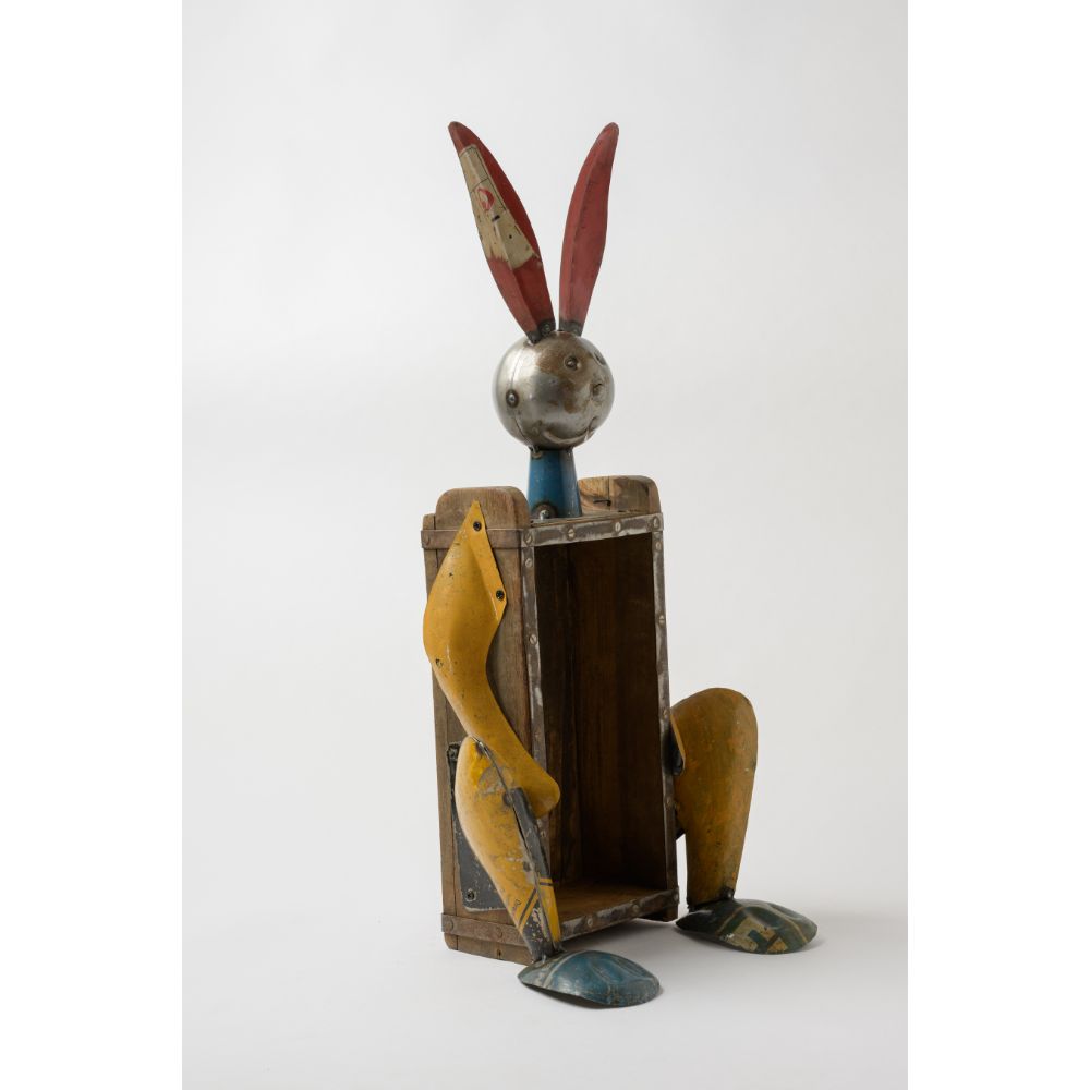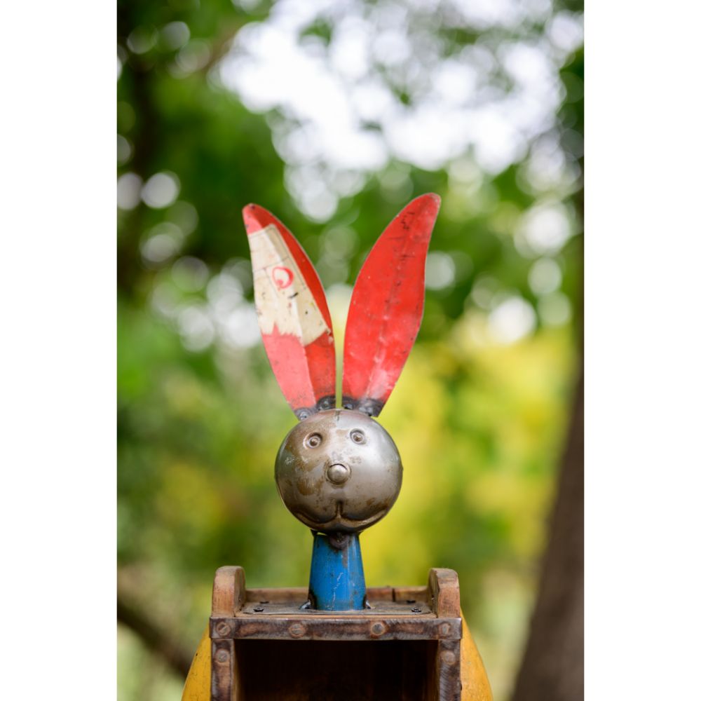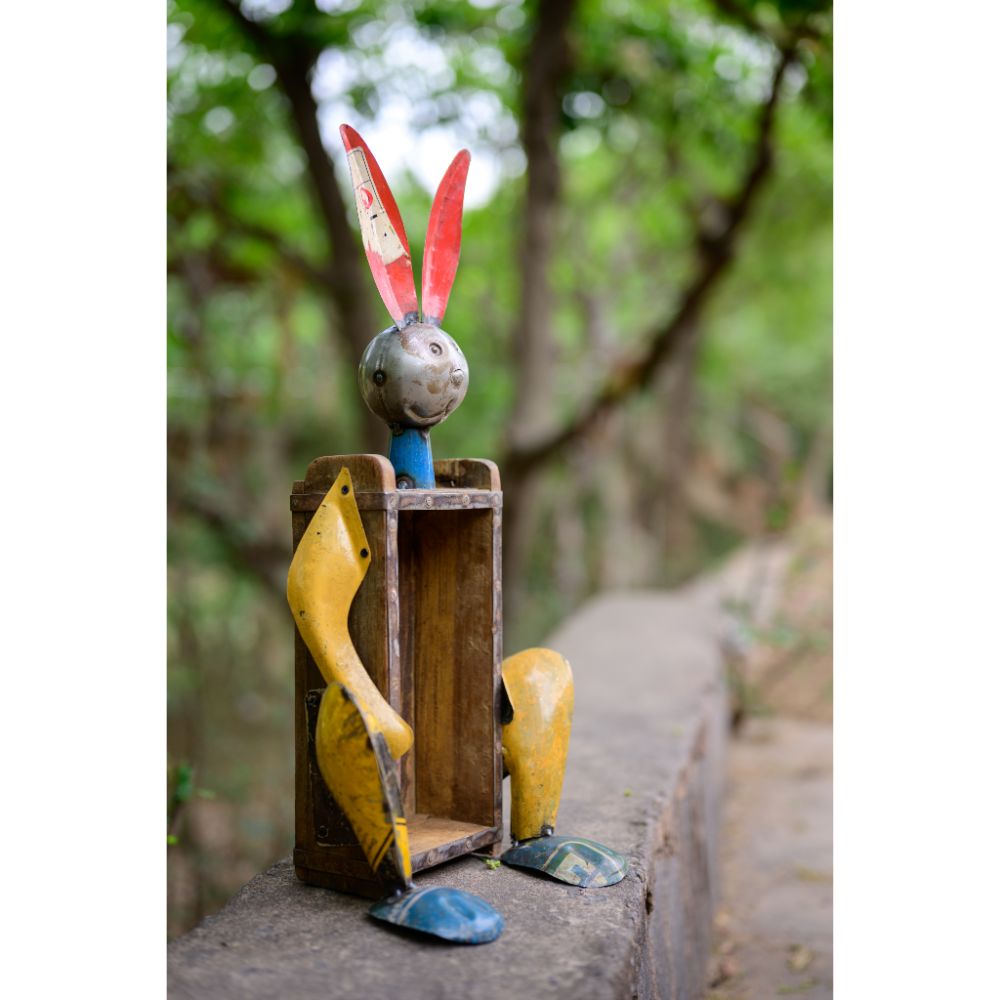 - Made From 100% Recycled Parts And Scrap Metal, This Decorative Recycled Iron Rabbit With Brick Mould Bottle Holder Figurine 10x7x21 (LWH) Inches