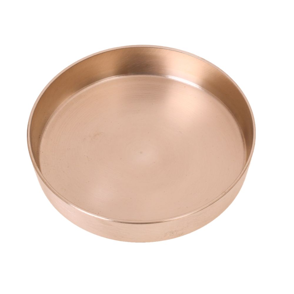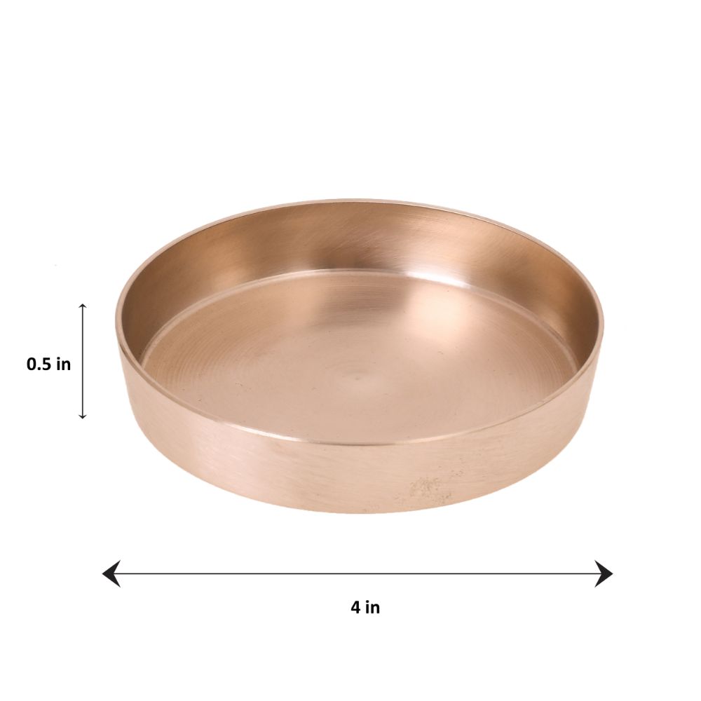 - Made of finest food grade Kansa (Bronze), this kitchen and dining vessel is an alloy of Pure Copper (79%) and Pure Tin (21%). Millennium-old traditions consider this composition ideal for serving any liquid and dry food. This Kansa Bronze Thali set sweet dish (matt) measures 4.0 inches in diameter and 0.5 inches in height.