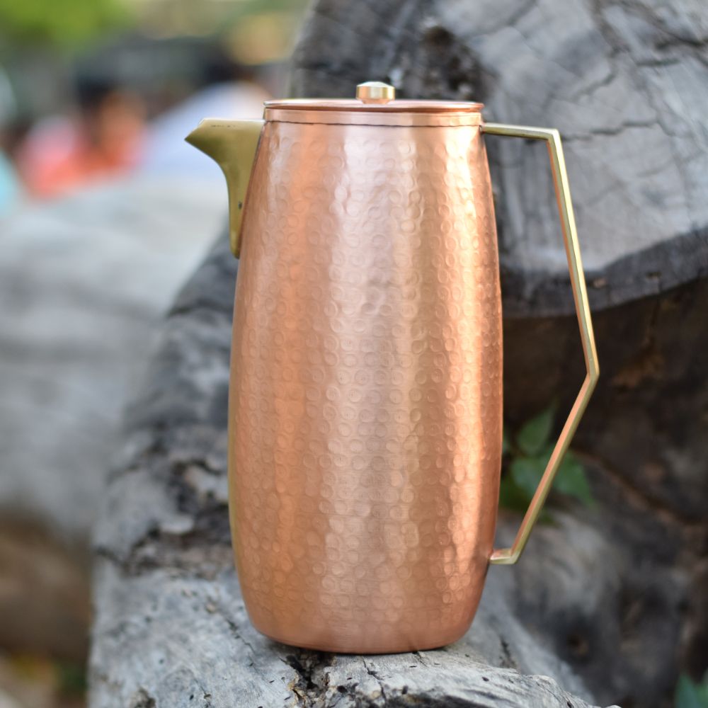- Using handmade tools, this exquisite copper jug has been crafted by skilled artisans from India. This product is eco-friendly, and highly durable. The surface finish of this handcrafted utensil will remain the same for decades to come.