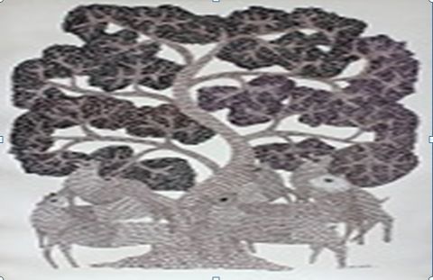 Traditional Gond Art – “Reunites Under Tree” (2016) by Ajay Kumar Ureti